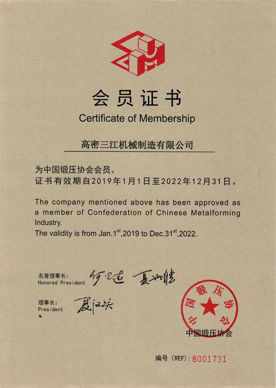 “三江之龍®”是高密三江2005年就開始注冊使用的品牌商標(biāo),已經(jīng)成為鍛壓行業(yè)知名品牌,多次榮獲商務(wù)部、信用中國、中國企業(yè)品牌評價中心等政府、行業(yè)協(xié)會的表彰,受到各行業(yè)客戶的充分肯定和廣泛贊譽。